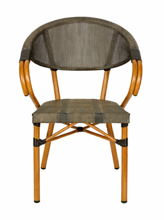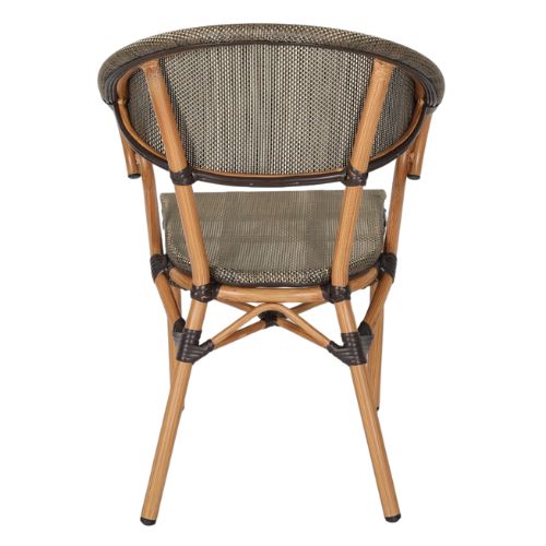 El asiento y respaldo en teslin color café grisáceo brindan confort, frescura y una alta durabilidad frente a los elementos.